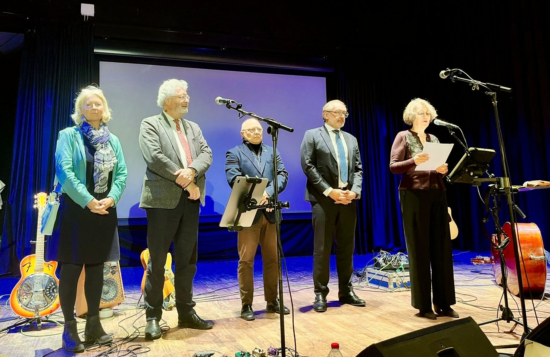 Côté français : Arnaud Péricard était entouré de Sylvie Habert-Dupuis, Première adjointe au Maire, Marc Miloutinovitch, Conseiller municipal, Natalia Pouzyreff, Députée et Caroline Gorse-Combalat, Présidente du Jumelage.